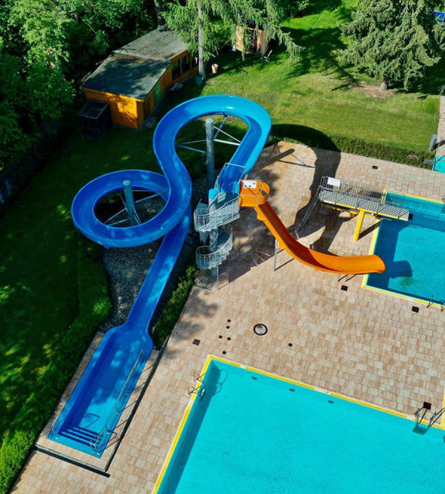 Das offene Wasserrutschensystem (Typ 3) ist für alle Altersgruppen geeignet. Mit einem Gefälle von max. 13% ist sie nicht zu schnell aber auch nicht zu langsam und bietet der ganzen Familie Freude.